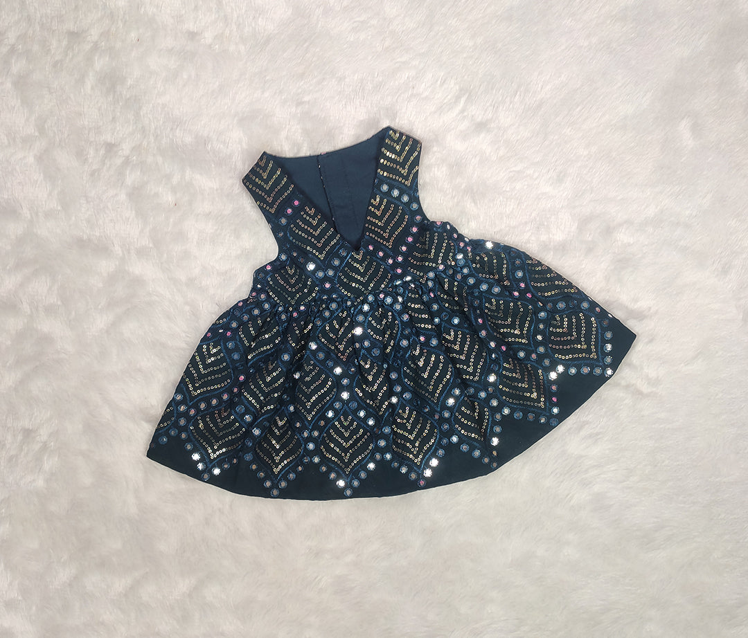 Treat your fur baby to turquoise temptation and comfort with our Georgette Embroidery Mirror Work Turquoise V-Neck Frock.