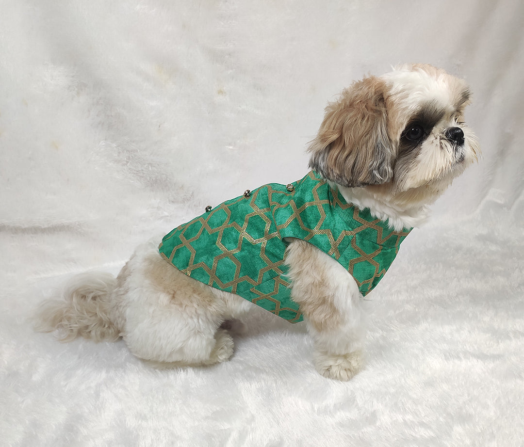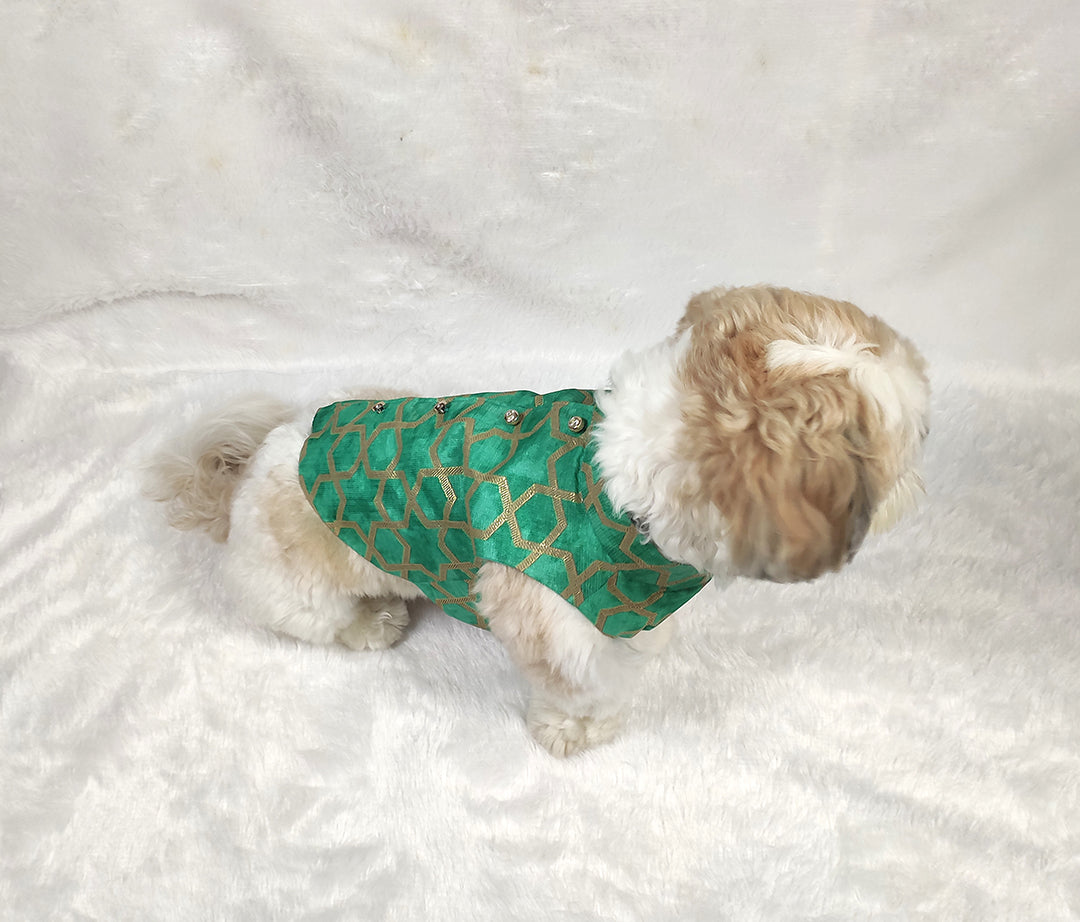 Treat your fur baby to luxury and style with our Rama Green Kota Doria Back Button Jacket