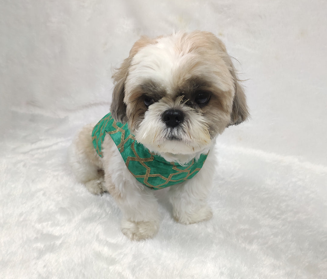 Wrap your furry friend in timeless sophistication with our Rama Green Kota Doria Back Button