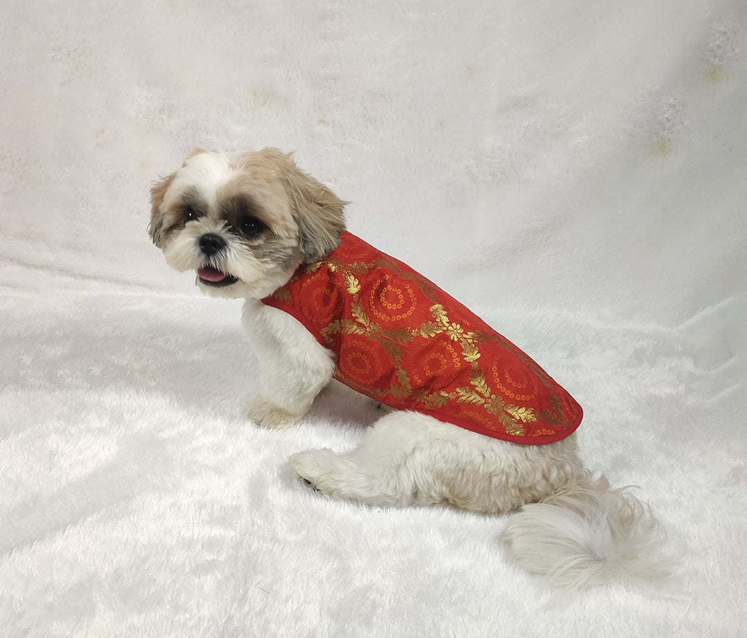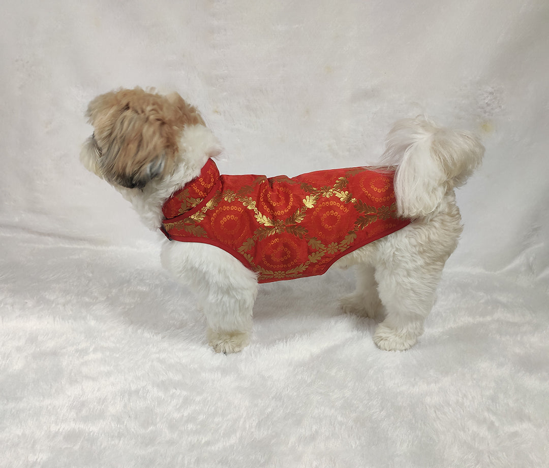 Dress your furry friend in vibrant elegance with our Orange Brocade Straight Jacket