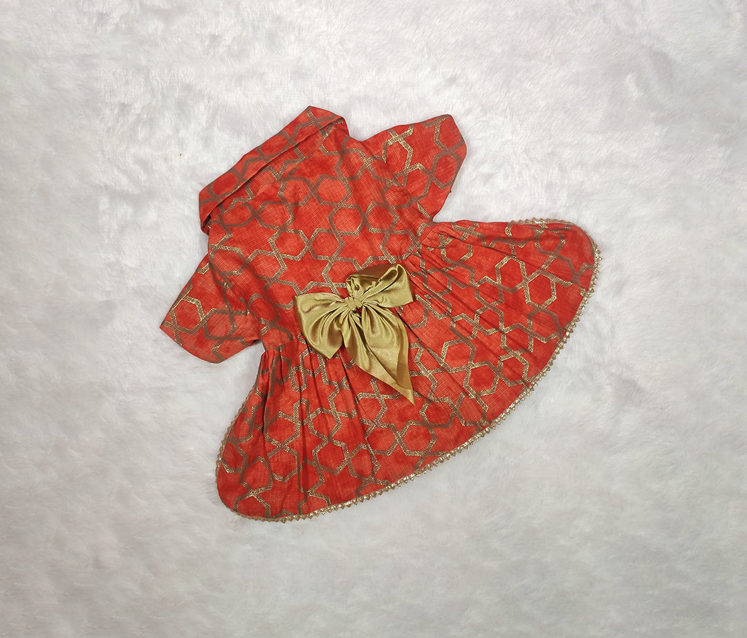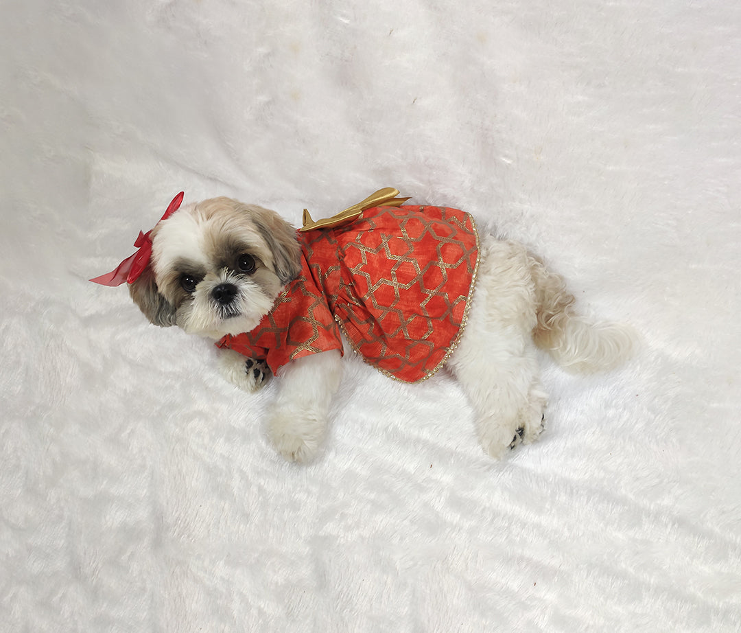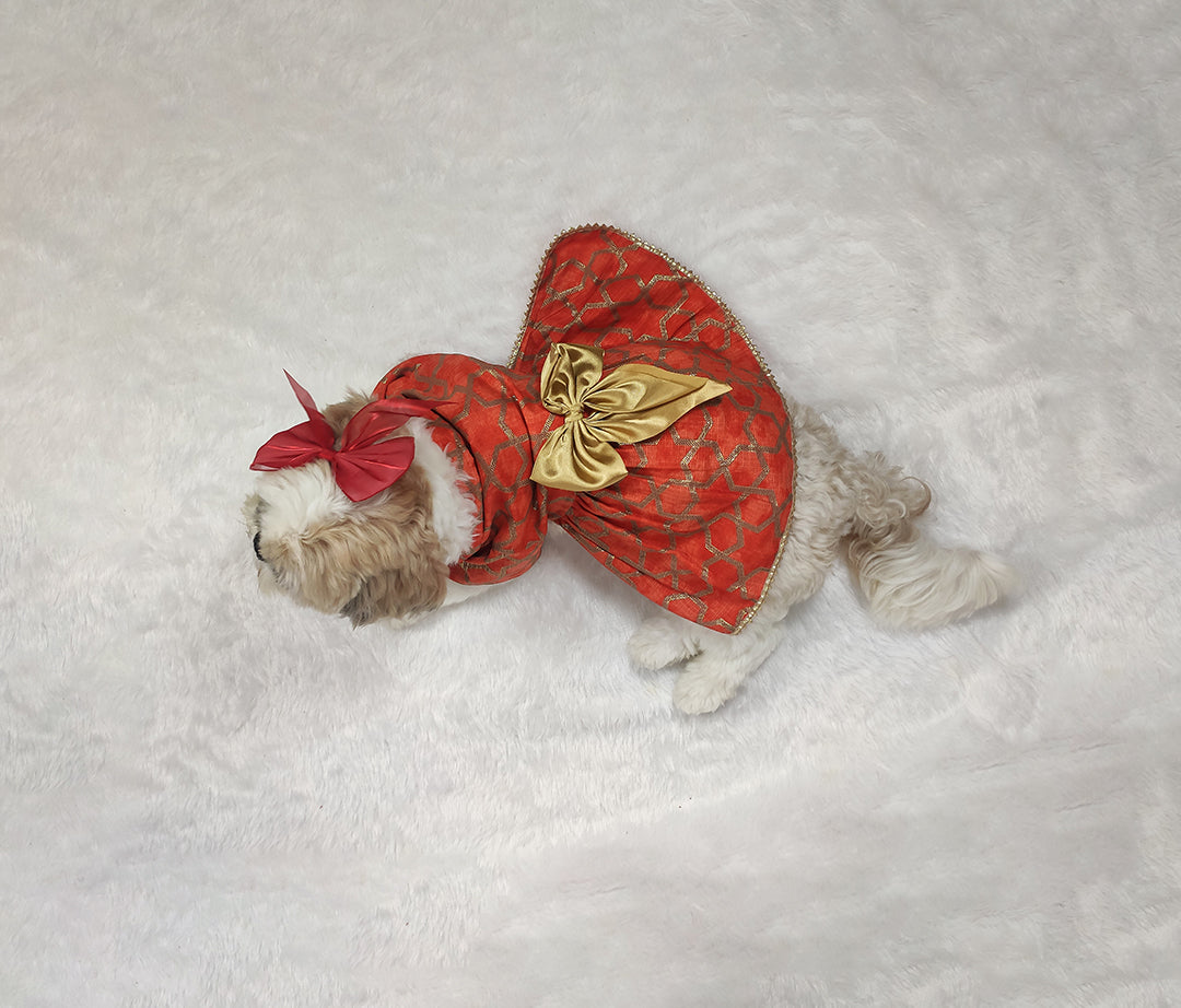 Adorn your furry friend in regal style with our stunning Kota Doria Shirt Collar Orange Frock!
