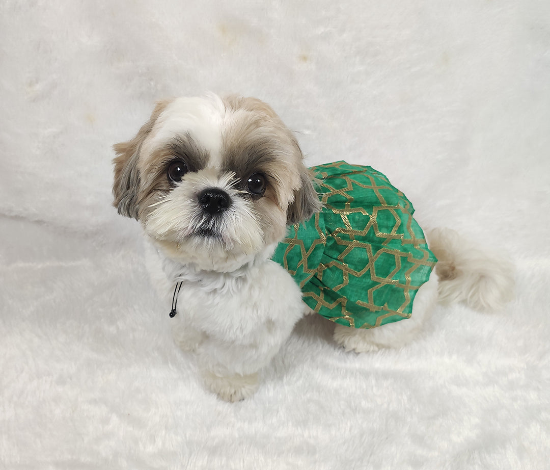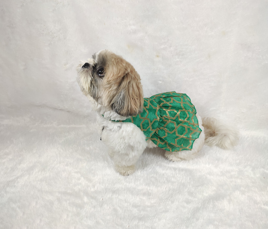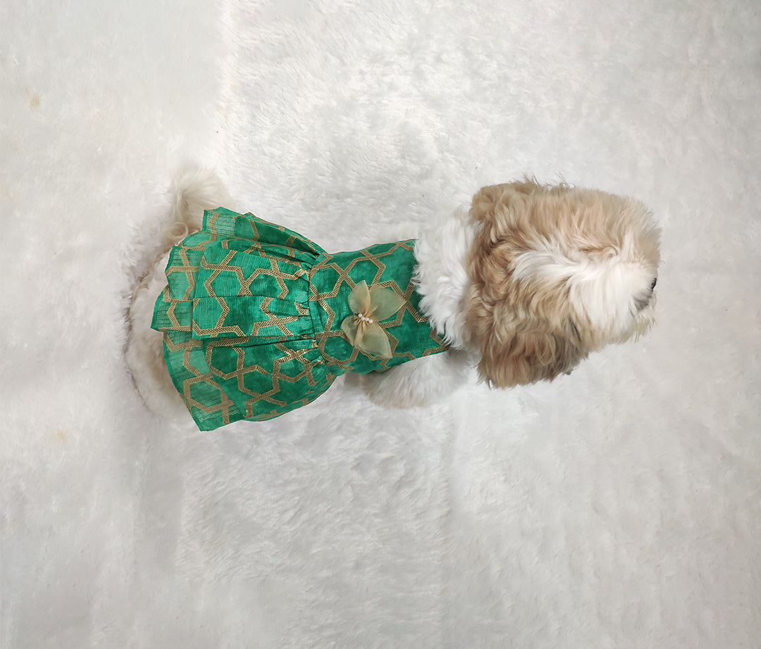 Dress your furry friend in stylish sophistication with our stunning Kota Doria Cold Shoulder Frock!