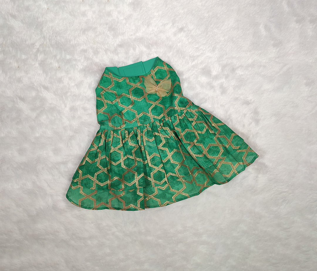 Treat your fur baby to trendy royal elegance and comfort with our Kota Doria Cold Shoulder Frock.