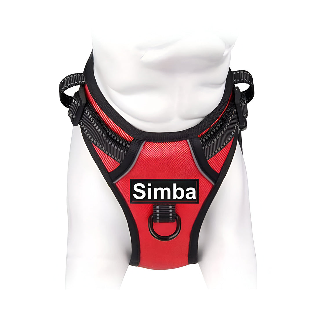 No Pull Padded Reflective Strap Personalized Dog Harness With Leash Red