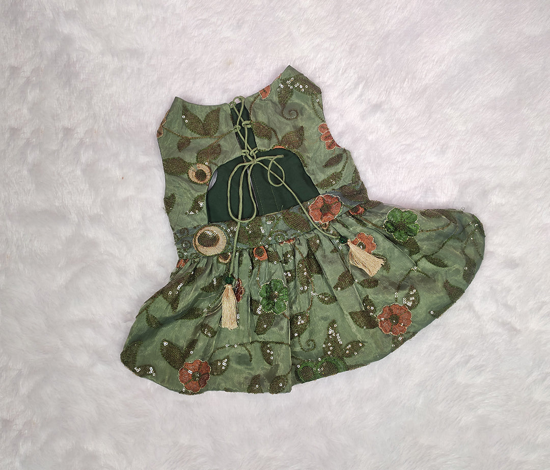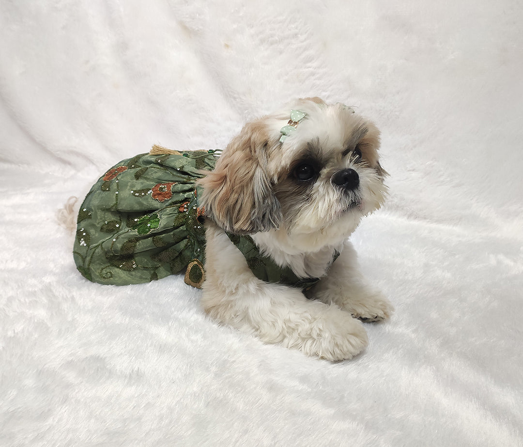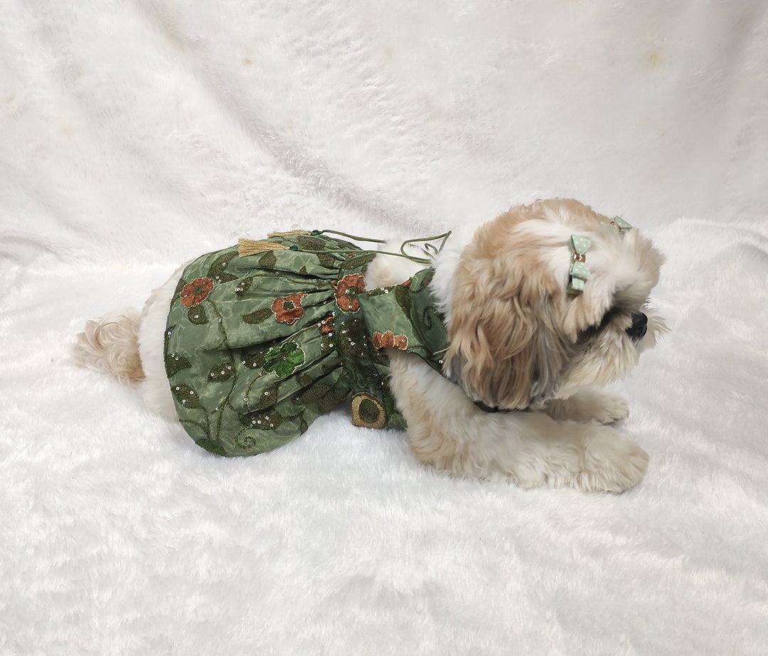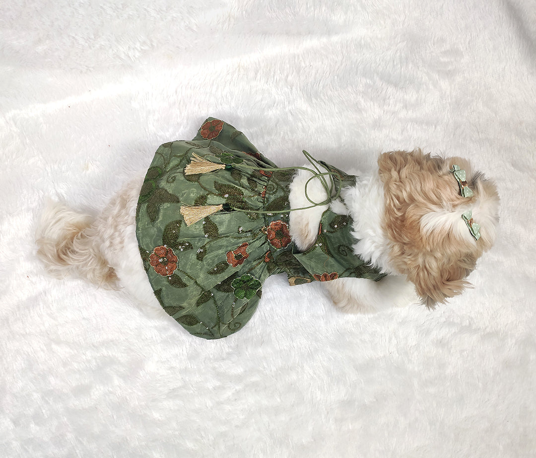Wrap your furry friend in sophisticated style with our stunning Organza Embroidery Work Olive