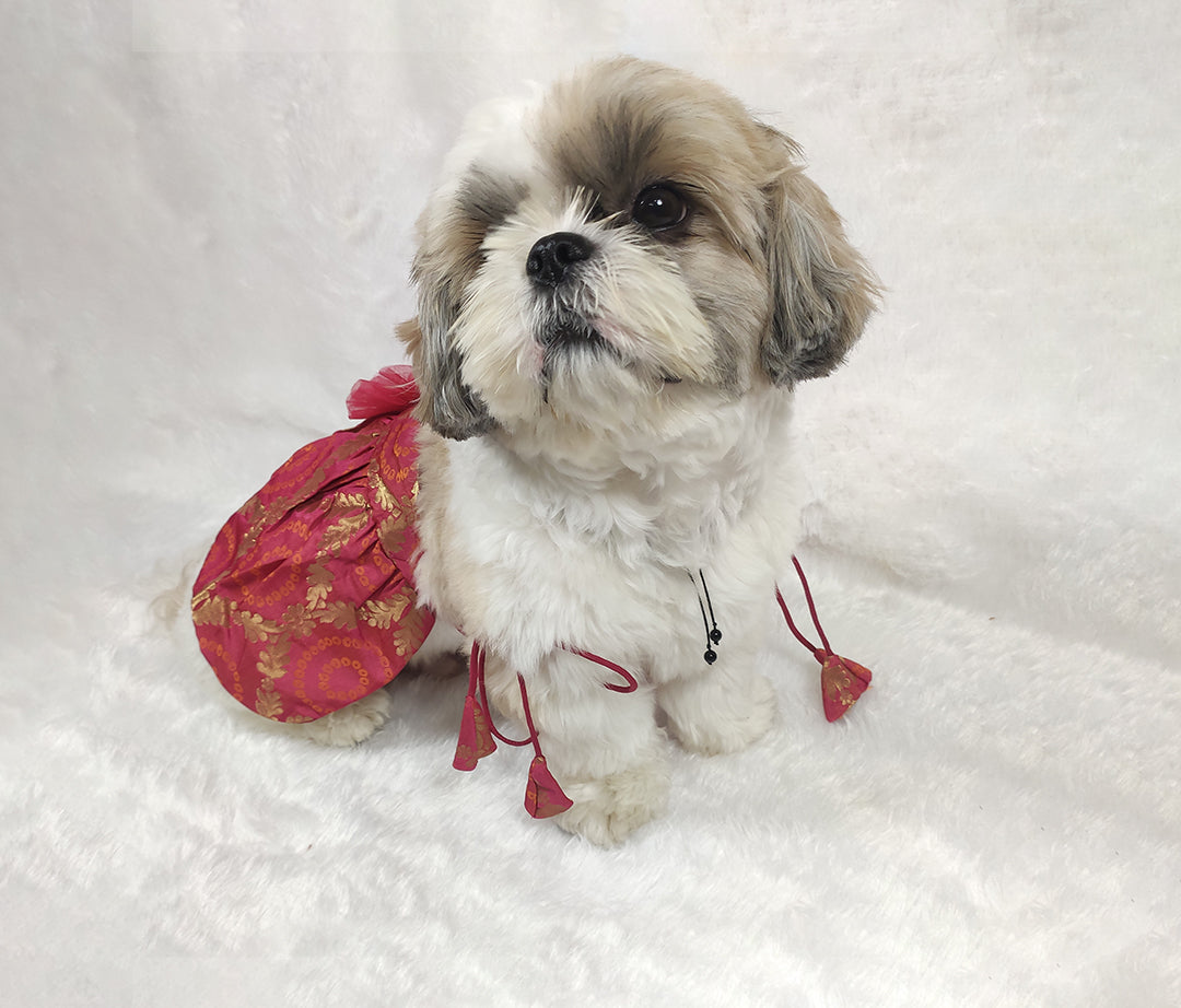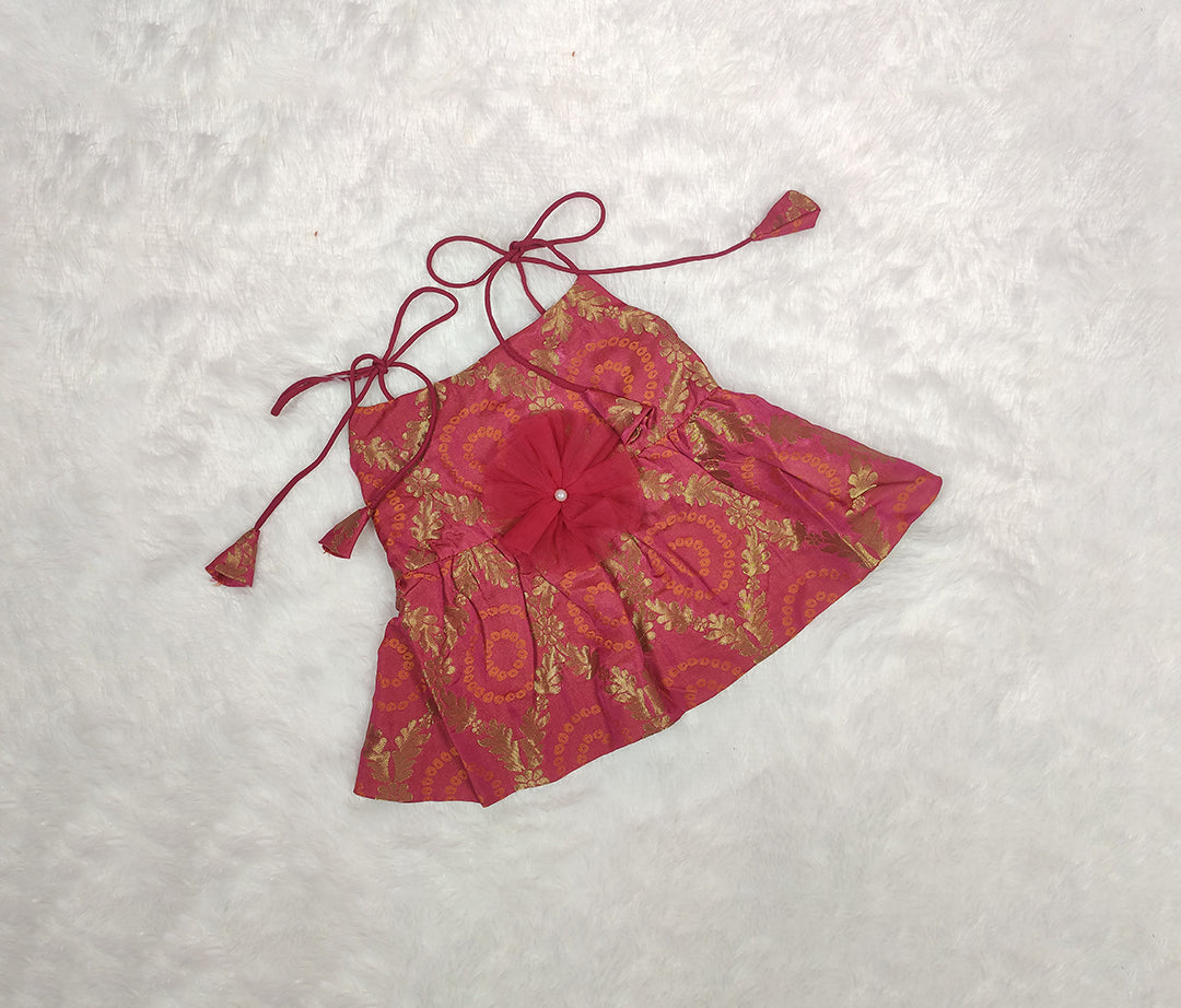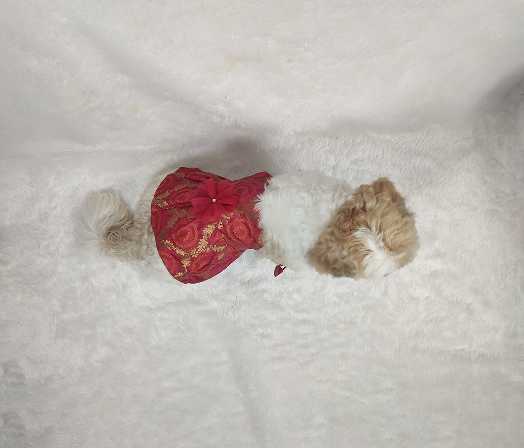 Adorn your furry friend in elegant style with our stunning Pink Brocade Halter Neck Frock!