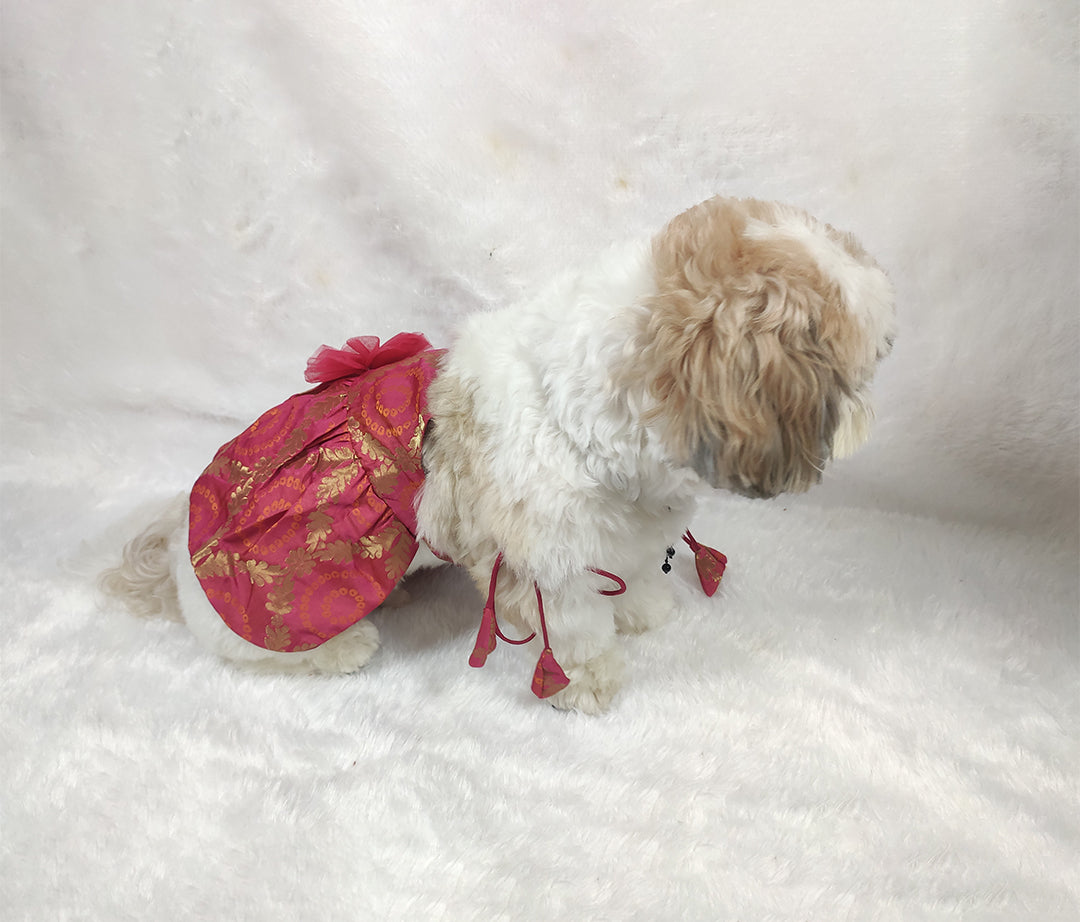 Treat your fur baby to rosy royal charm and comfort with our Pink Brocade Halter Neck Frock