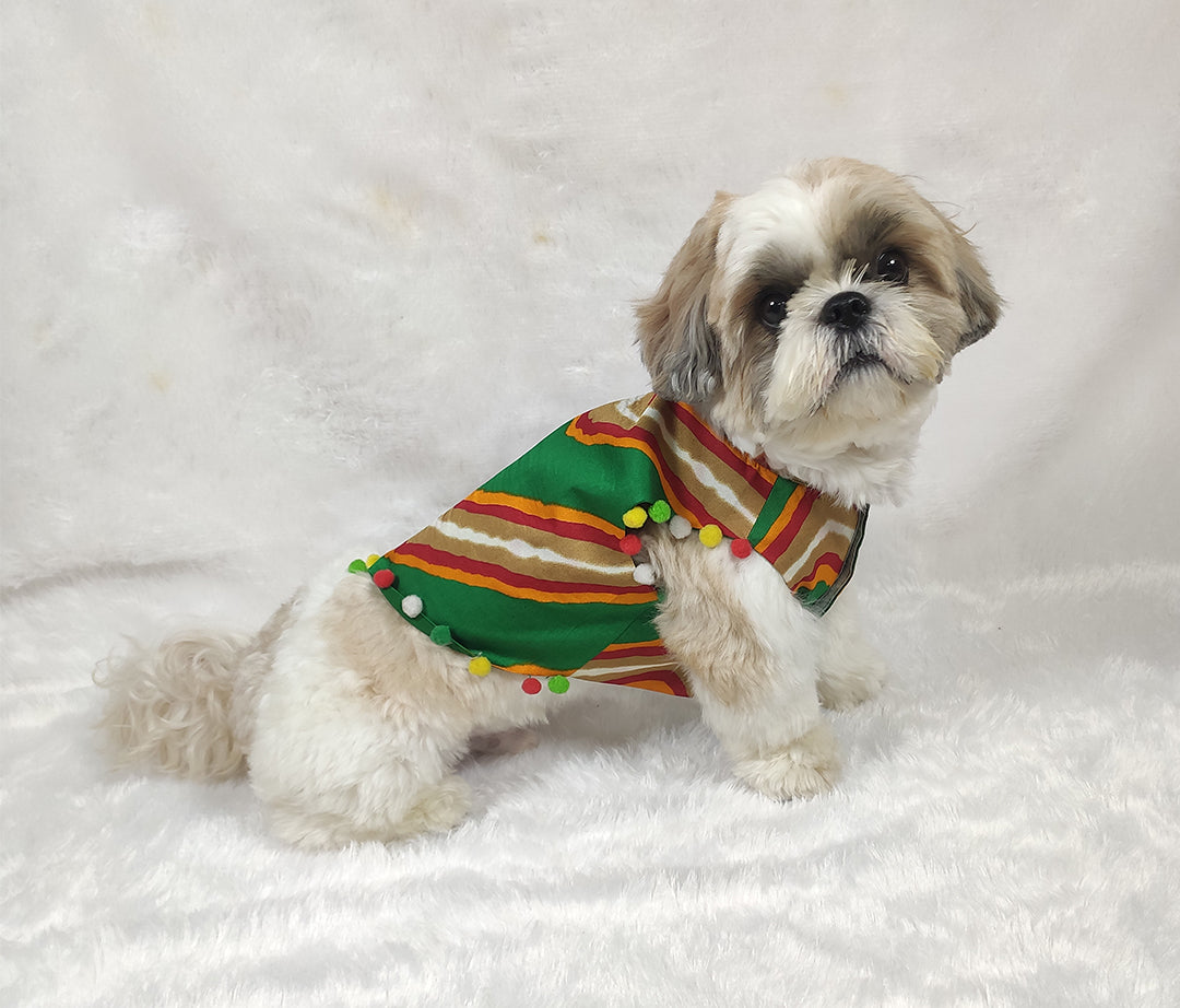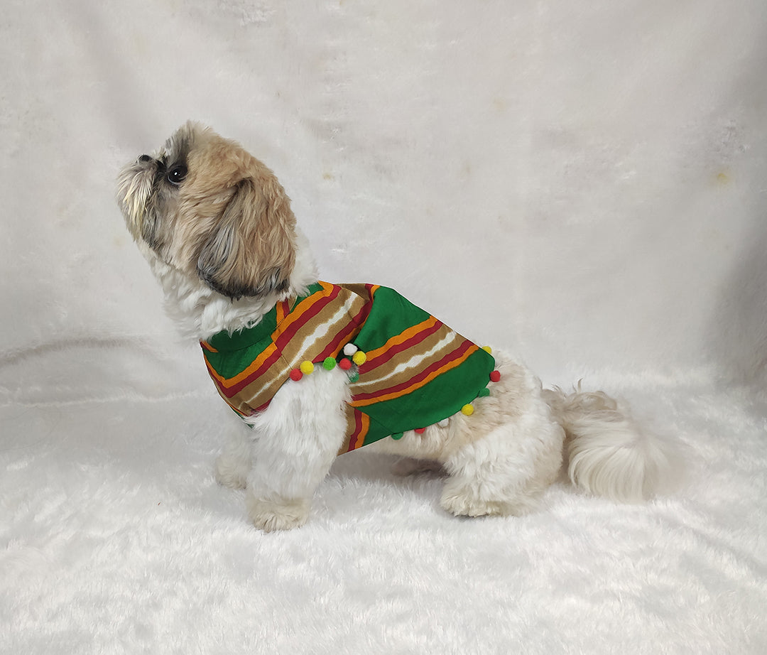 Get your pup festival-ready with our Green Georgette Leheriya Pom Pom Jacket!
